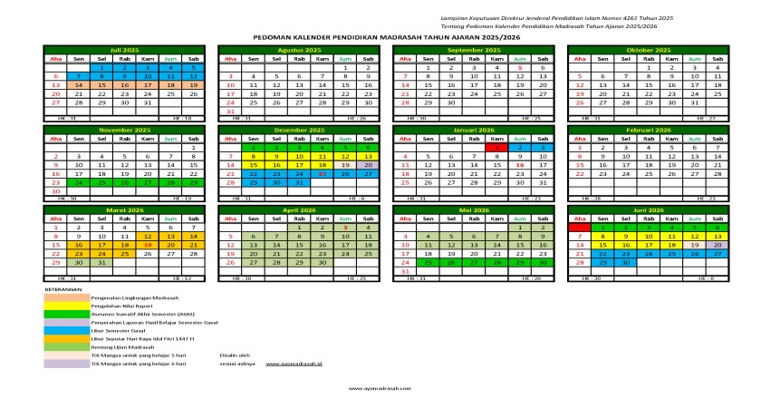 Pedoman Kalender Pendidikan Madrasah Tahun Ajaran 2025/2026; Unduh Berkas PDF dan XLSX